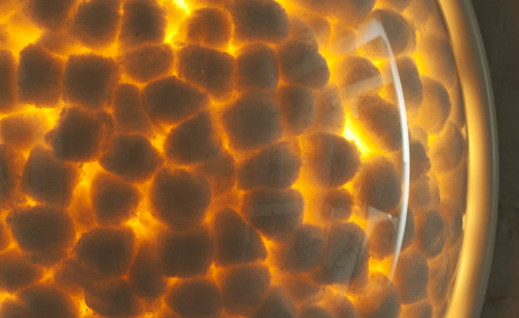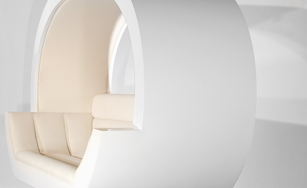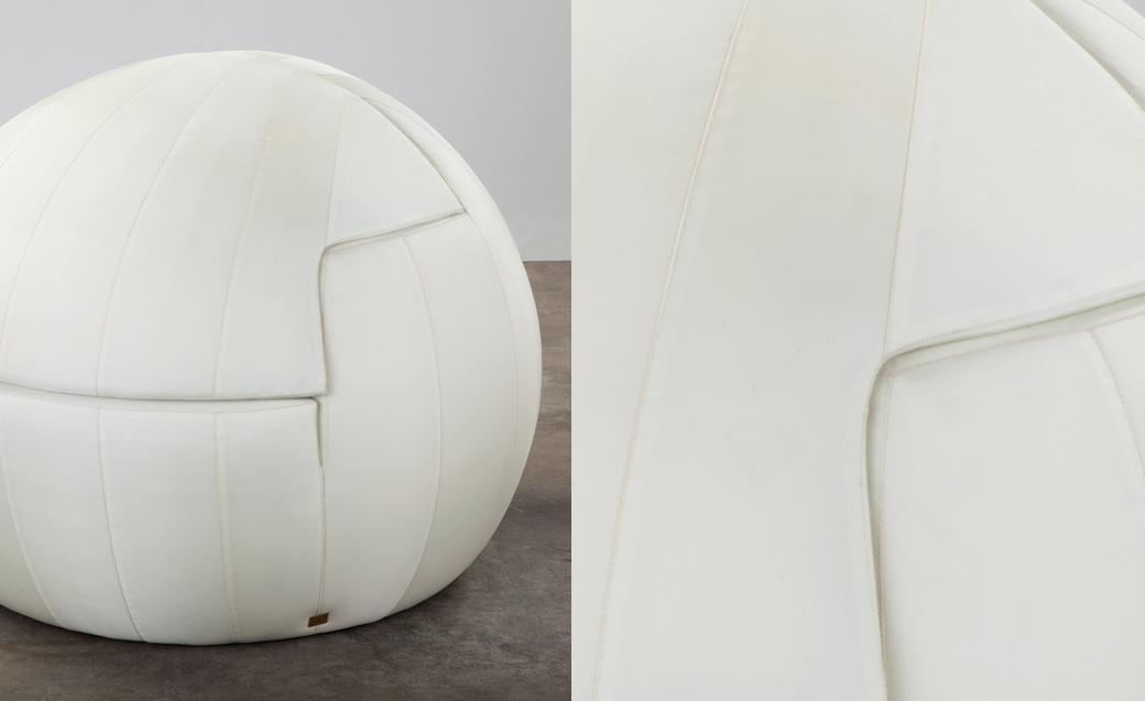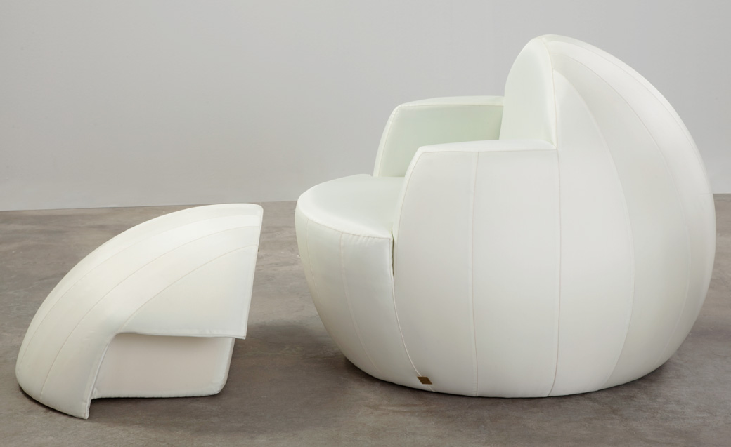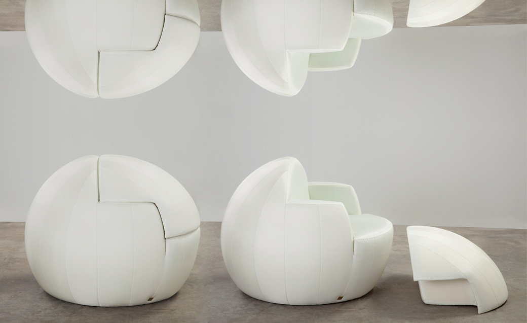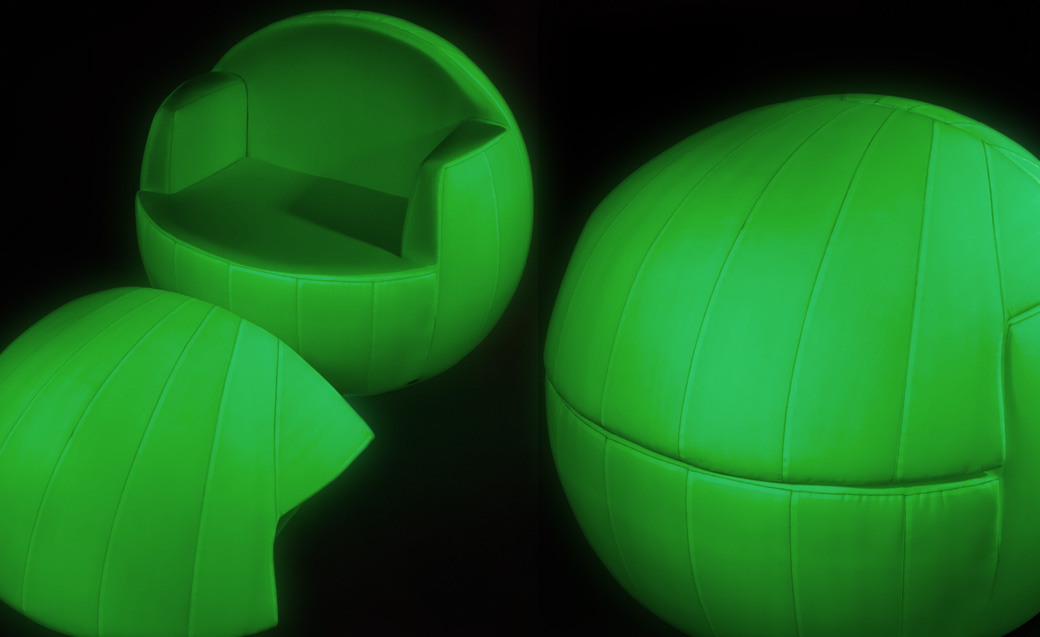 Gibbous is a glow-in-the-dark easy chair and ottoman. One quarter of the sphere pulls