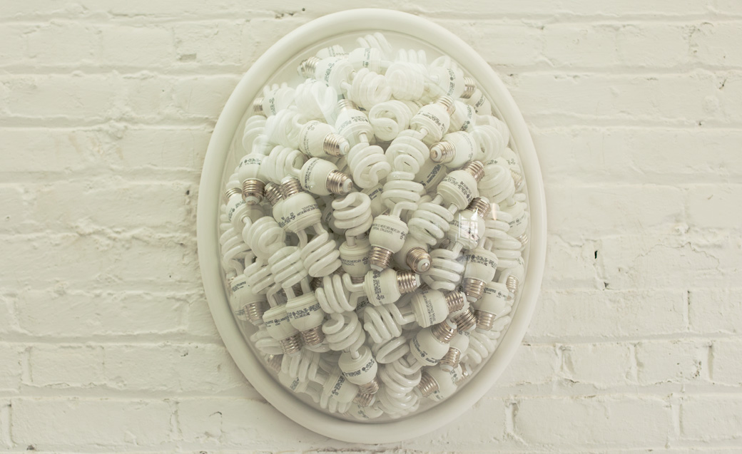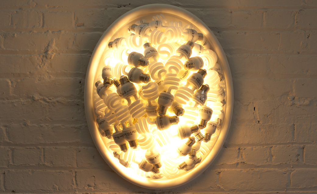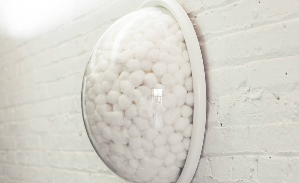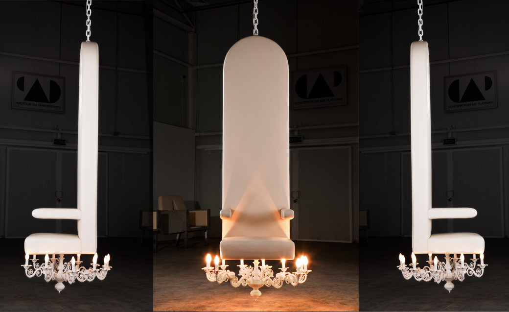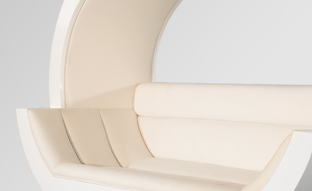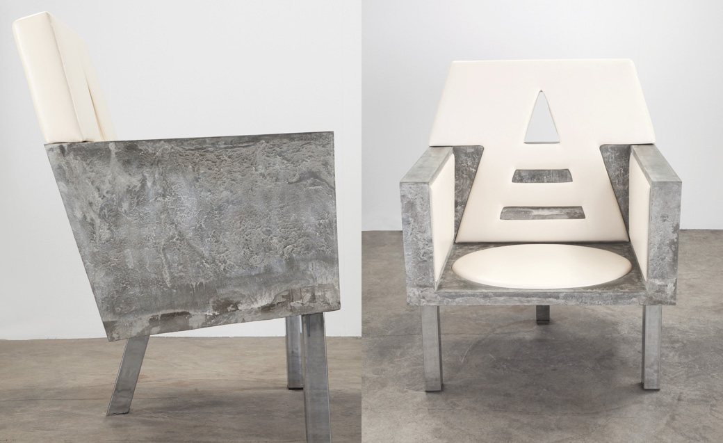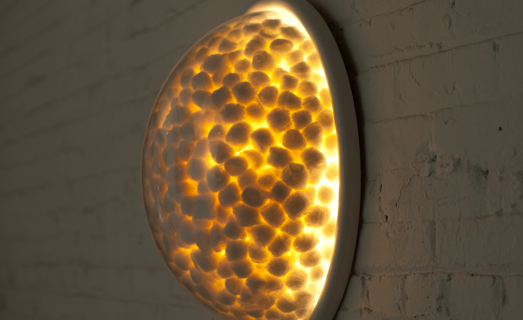 Gibbous is a glow-in-the-dark easy chair and ottoman. One quarter of the sphere pulls