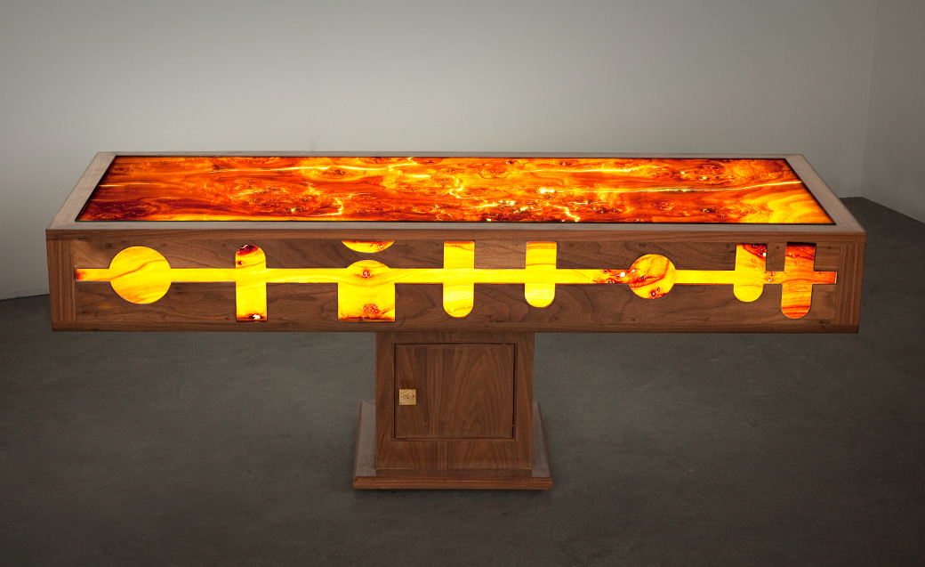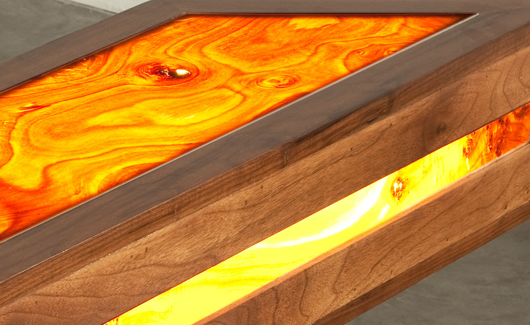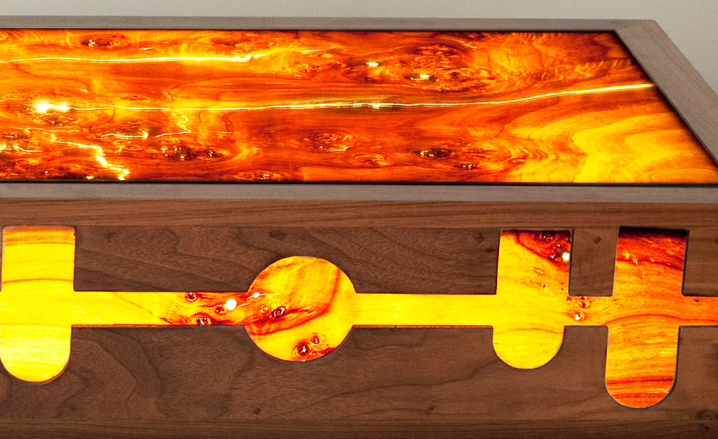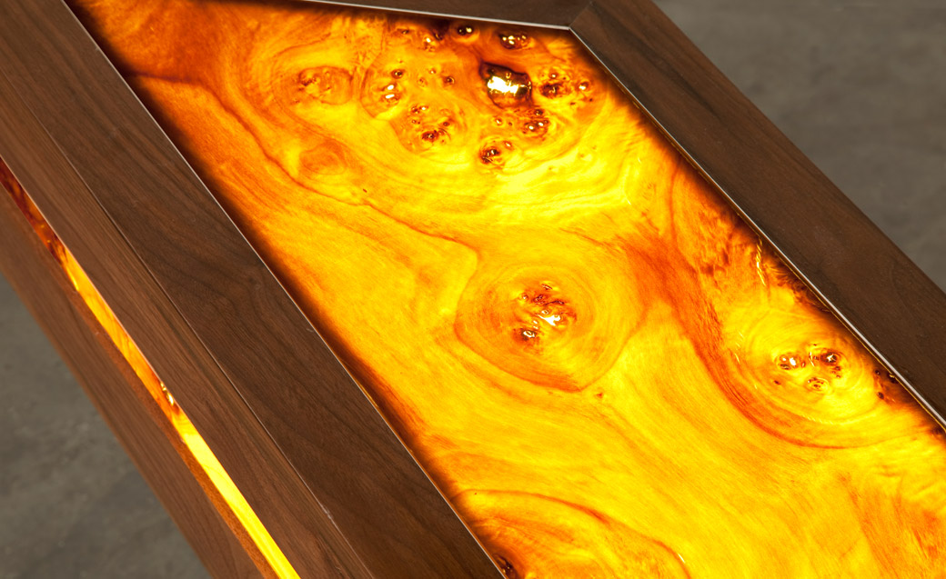 eye maple; when the light is on, the complex structure of the grain glows like hot lava.