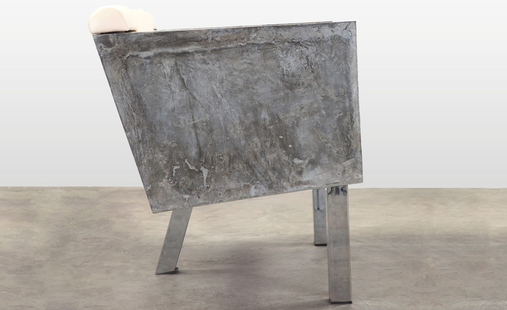 Little Oyster is a side table that opens up into a club chair. Simply pull up the back