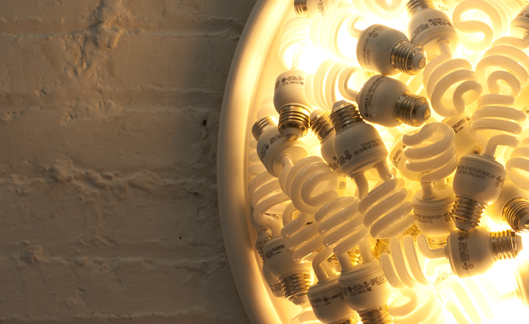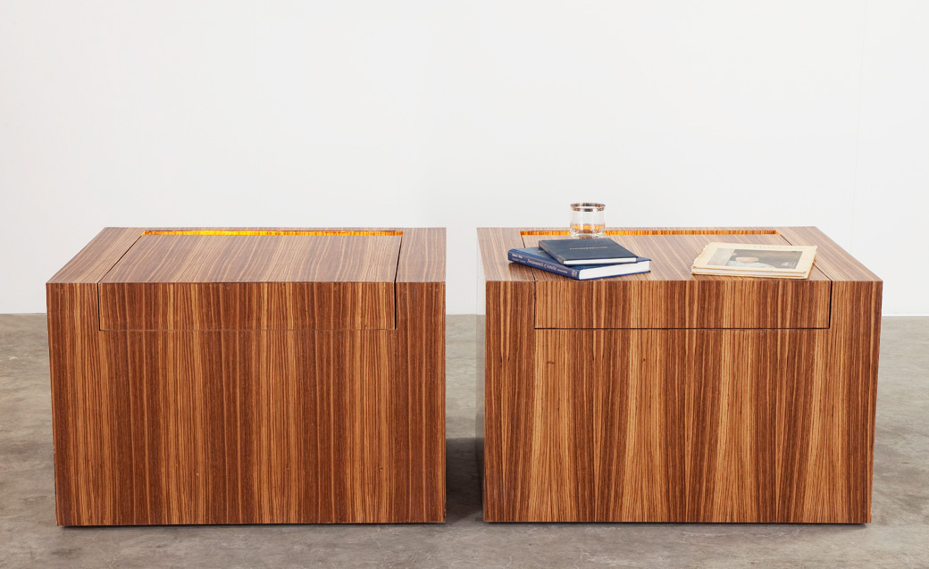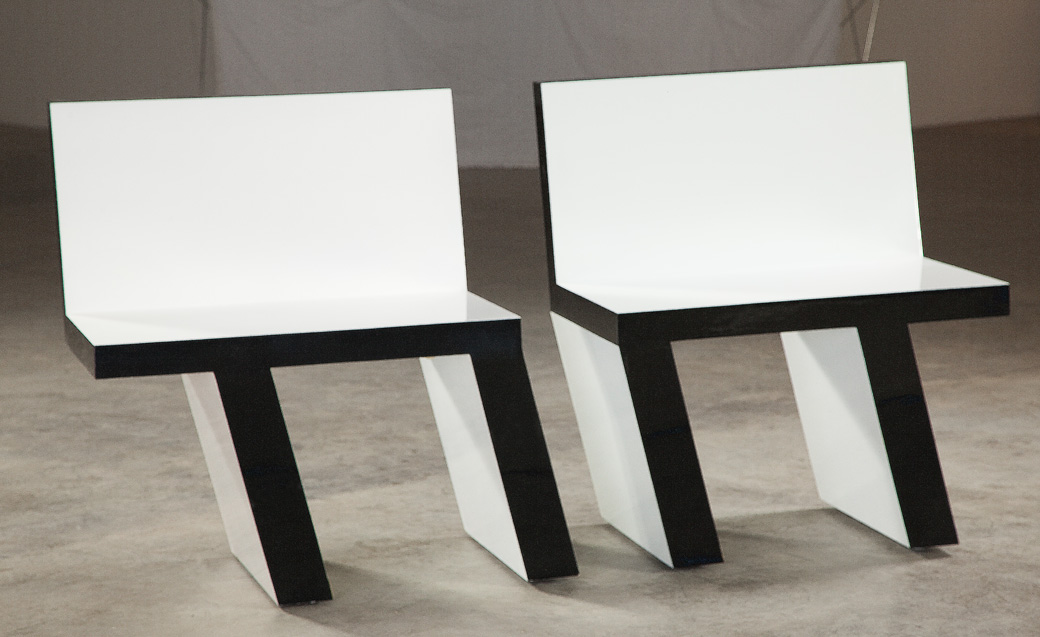 Gibbous is a glow-in-the-dark easy chair and ottoman. One quarter of the sphere pulls